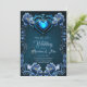 Invitación Corazón gótico azul rodeado de flores mágicas