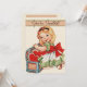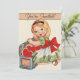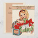 Un estilo retro lindo de la década de 1950, esta niña está abriendo su caja llena de corazones. De una tarjeta vintage del Día de San Valentín.