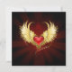 Corazón rojo brillante de un ángel con alas doradas brillando en el fondo rojo oscuro y radiante decorado con un patrón.