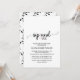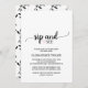 Este simple sorbo de caligrafía negra de corazón rosa y la tarjeta de invitación a ver es perfecta para una reunión rústica o moderna con el fiesta bebé. El diseño minimalista para una niña tiene una tipografía encantadora y un sutil corazón rosa rubor. El respaldo presenta un patrón clásico de hojas y ramas.