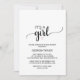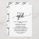 Esta tarjeta de invitación "es un chica", simple caligrafía negra y rosa, es perfecta para una ducha de bebé moderna o rústica. El diseño minimalista para una niña tiene una tipografía encantadora y un sutil corazón rosa rubor. El respaldo presenta un patrón clásico de hojas y ramas.