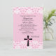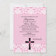 Comience su celebración apagado con esta invitación elegante con todo delicada para eso bautizo especial del bautismo de los chicas. Tiene un damasco rosado en el top y la parte inferior de la invitación. En la parte inferior en el centro hay una cruz negra con un corazón rosado en el centro de él. Compruebe hacia fuera los muchos otros artículos en esta línea tal como etiquetas, franqueo, agradezca le las notas, y más.