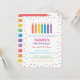 Un colorido arcoiris bordea la invitación con un conjunto de lápices de colores a juego en los colores del arcoiris perfecto para esa fiesta de cumpleaños de arte y artesanía! ¡Aguarda el fiesta divertido en un estudio de arte o incluso en tu casa! Colorida, brillante, atractiva, dulce y chica, esta invitación es perfecta para chicas de cumpleaños y sus amigos! Personalice fácilmente los detalles de su fiesta. Más lápices de colores en la página inversa.