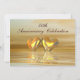Invitación de aniversario dorado número 50 con dos corazones dorados flotando en el agua. Personalice el texto de ejemplo en el reverso con su propia información para su evento.