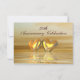 Invitación del 50 aniversario dorado con dos corazones dorados flotando en el agua. Personalice el texto de ejemplo en la parte posterior con su propia información para su evento.