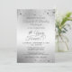 Celebre cualquier aniversario de bodas con estas elegantes invitaciones de plata o platino que presentan un diseño de tipografía de letra caligráfica # AÑOS EN PARA SIEMPRE (editable para el número de años que la pareja ha estado casada) acentuado con corazones entrelazados y confeti brillante contra un fondo metálico cepillado falso en la parte delantera e incluye las iniciales de su monograma en corazones entrelazados en la parte posterior. Contacte al diseñador a través de Zazzle Chat o makeitaboutyoustore@gmail.com si desea que se modifique este diseño, en otro producto o si desea artículos coordinados.