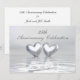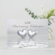 Una invitación de bodas de plata número 25 de color plateado con mi obra de arte de dos corazones de plata flotando en el agua. Personalice el texto de muestra en la parte posterior con su propia información para su evento.