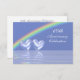 Invitación de aniversario de diamante 60 con un arcoíris en un cielo azul claro y dos corazones de diamante brillantes flotando en el agua. Personalice el texto de muestra en la parte posterior con su propia información para su evento.