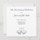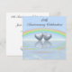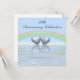 Invitación de aniversario de hojalata o aluminio del 10º aniversario con dos corazones de hojalata flotando en el agua bajo un arcoíris. Personalice el texto de muestra en la parte posterior (Texto 4 a Texto 8 en los campos de texto) con su propia información para su evento.