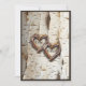 Árbol de pájaros blancos de bonito con dos corazones rústicos hechos con ramas y ramas dobladas. Añade tus nombres a los corazones, y personaliza el texto de la invitación, la redacción.
