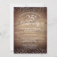 Invitación Corazones de plata rústicos de madera Boho 25 Aniv