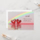 Invitación del 40º aniversario de rubí con un arcoíris y dos corazones rojos de rubí brillantes flotando en el agua. Personalice el texto de ejemplo en la parte posterior con su propia información para su evento.