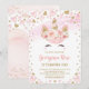 Invitación Corazones dorados rosados de cumpleaños Unicornio,