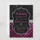 Invitación Corazones Purpurinas rosadas y negras 21º cumpleañ