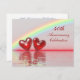 Invitación de aniversario de rubí 40 con un arcoíris y dos corazones rojos rubí brillantes flotando en el agua. Personalice el texto de ejemplo en la parte posterior con su propia información para su evento.