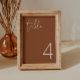 Este número de tabla boda presenta una tipografía manuscrita y un diseño minimalista moderno con un color naranja quemado por bohemias. Cambie fácilmente el número para crear todos los números de tabla. Todos los colores son editables.