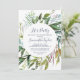 Esta invitación de corona de diamantes de vegetación de verano para una fiesta es perfecta para un evento elegante de mediados de verano. El diseño botánico presenta un arreglo exuberante de eucalipto pintado con acuarela, vegetación y hojas verdes con delicados tallos de flores rosadas. Esta invitación es perfecta para una fiesta de compromiso, despedida de soltera o cualquier evento o fiesta.