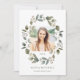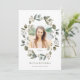 Estas elegantes y modernas invitaciones de graduación con fotos presentan una corona de acuarela compuesta por hojas y bayas de color verde crepuscular. Hay cinco fotos en total para que puedas elegir muchas de tus fotos favoritas del graduado. Úsalas para un anuncio general de graduación, o el graduado puede agregar detalles de la invitación a la fiesta en el reverso.