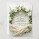 Elegante corona de lirios y hiedra con un delicado paño alrededor de la base. Perfecta para bodas, fiestas de compromiso nupcial o celebraciones de baby shower.