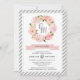 Invitaciones personalizadas para Cena de Ensayo con Corona de Peonía Rosa Sonrojo, pintura de acuarela con fondo de patrón de franja gris. Personalice los nombres, fecha, texto y todos los detalles de sus invitaciones. Invitaciones para la fiesta de boda, invitaciones para la despedida de soltera, tarjetas de 'Save the Date', tarjetas de petición para dama de honor, tarjetas de agradecimiento, regalos y favores de boda disponibles en la categoría de Diseño Floral de nuestra tienda.