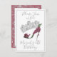 Suelo de cerezo Profundo zapato floral morado con una hermosa tiara o corona de plata. Invitación especial personalizada para cumpleaños, quinceañera, graduación, ducha o evento especial.