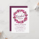 Invitaciones elegantes para ducha nupcial de boda con un fondo blanco minimalista y elegante, una corona de tulipanes rosados de acuarela y una plantilla moderna para la fiesta de la novia de ciruela.