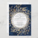 Corona floral gótica temperamental, con toques de rubor, gris acero y tonos dorados y azul marino. Un diseño rústico evocador con tema botánico vintage. Estas acuarelas pintadas a mano enmarcan perfectamente un texto sofisticado, con elementos de escritura delicados y una fuente en negrita para el nombre de la pareja. Artículos coincidentes disponibles.
