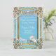 Invitaciones de Corona y Carruaje de Princesa Azul Dorado Quinceañera. Personalice para cualquier evento.