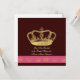 Una hermosa invitación de boda en formato cuadrado. Ilustración adorable de una corona dorada con varias coronas más pequeñas en la parte inferior en una franja de rosa brillante. Agrega tu propio texto en cualquier fuente o color para un efecto dramático. ¡Juega también con los colores de fondo!
