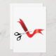 Cortar una cinta con tijeras cortando a través de una cinta roja. Este diseño parece realmente efectivo en estas invitaciones