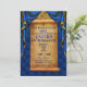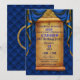 Invitación Cortinas doradas de azul real Pergamino Cumpleaños