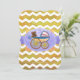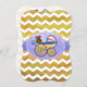 Cute Baby Carriage Chevron Baby Book de ITD Colors Galore presenta nuestro original patrón de zag en color dulce dorado y zig blanco con nuestra textura distintiva en el fondo con una banda violeta texturizada y una pieza central decorativa con un lindo cochinillo vintage que sostiene un oso de peluche. En la parte de atrás el patrón de chevron continúa con una banda morada que tiene un patrón de juguetes lindos para bebés corriendo a través de ella. Siga la pista del primero de su bebé, empezando con su ducha de bebé de piña.