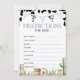 Let guests guess the baby’s weight, date, and time with these cowboy prediction cards. Featuring a rustic cactus and wooden barrel design. A fun and interactive activity for your western or country-themed baby shower celebration.