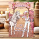 Cowgirl and Horse Pink White Ranch Birthday Party. Blonde girl Pink and white cowgirl boots and hat a horse with a saddle all with a party in the background on a country ranch. Add your age, suitable for girls and women’s birthdays. This is copyrighted design by Zizzago.