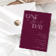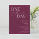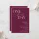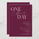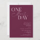 Invitación a la cena de bodas minimalistas con texto de tipografía que dice "un día más". El fondo es arándano.