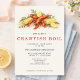 Festive crawfish boil summer party invitation perfect for backyard gatherings and Southern style celebrations. Ideal for seafood boils, family cookouts, and warm weather parties with friends and neighbors. Editable text. Print ready layout.