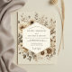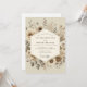 This design evokes a soft, ethereal mood with its muted cream and taupe floral arrangement. Delicate anemones and lush foliage create a romantic, natural aesthetic, perfect for a rustic woodland theme.