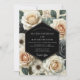 A romantic arrangement of lush, creamy roses and delicate white blossoms creates a soft, elegant feel. The botanical elements are rendered in a realistic style with hints of muted green foliage, evoking a timeless and sophisticated mood for your special day.