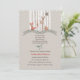 Esta encantadora invitación a la ducha de bebé captura la esencia de una mágica celebración de los bosques. El diseño presenta una encantadora colección de criaturas de bosques -conejos, ciervos y zorros- juguetonamente reunidos alrededor de altos y elegantes abedules. El suave y neutro fondo complementa los caprichosos ilustraciones, creando una atmósfera serena y encantadora. El texto, mostrado en un guión elegante, es un poema original escrito por el artista y está perfectamente equilibrado entre la elegancia moderna y el encanto rústico, lo que facilita su lectura mientras mantiene un sentido de celebración y anticipación. La paleta mullida de tonos tierra, con sutiles tonalidades de color, añade un toque de sofisticación, asegurando que la invitación sea a la vez intemporal y elegante. Esta invitación es perfecta para amigos y familiares que quieren celebrar la próxima llegada con un acogedor encuentro inspirado en la naturaleza. Su atención por los detalles, desde los delicados ilustraciones hasta la cuidada disposición, hace que sea un placer para los clientes. Ya sea que esté planeando una pequeña ducha íntima o un gran evento con temática de bosques, esta invitación marca el tono para una celebración inolvidable.