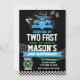 Crecer Dos chicos rápidos verde con coche de raza azul invitación de segundo cumpleaños con damas blancas y negras