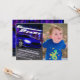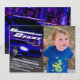 Arranca tus motores y corre hacia la meta para celebrar el cumpleaños de tu hijo. Esta invitación única fue dibujada digitalmente para ilustrar un coche deportivo muy rápido en un concurso de carreras nocturnas en la calle sin que nadie pueda alcanzarlo