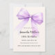 Un fondo beige suave de color crema, decorado con una gran espliego, un arco violeta de color violeta. Personalice y agregue un nombre y detalles del fiesta.