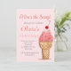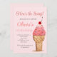 Invitación Crema de hielo 7 Chica de cumpleaños acuarela rosa