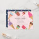 Invitación de cumpleaños de helados fiestas con cremas de pórticos y helados coloridos. En la parte de atrás hay un bonito fondo azul marino. Usar la opción de personalizar esta plantilla para cambiar el texto | Use CLICK TO PERSONALIZAR ADEMÁS para cambiar el estilo y el color del texto. También puede cambiar el color de fondo en el lado frontal.