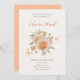 Invitación Crema naranja flor flor mariposa boda