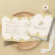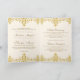 Sorprenda a sus invitados con esta elegante invitación de boda plegada que presenta un hermoso diseño de damasco de Relieve metalizado de oro falso con "Bismillah" en caligrafía árabe. Simplemente agregue los detalles de su evento en esta plantilla fácil de usar para convertirla en una invitación única.