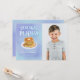 Fun pancakes y pijama carta de plantilla de invitación para fiesta de cumpleaños con un ilustracion de un montón de crepes con mantequilla y jarabe de arce. También puede agregar la imagen de su hijo en esta invitación. Esta invitación de color azul oscuro es perfecta para los fiestas o fiestas de los niños.