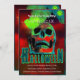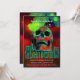 Inviten a todos a su fiesta de Halloween con esta oscura y fantástica invitación a la Creepy Party Zombies Neon Scary Skull con su texto personalizado.