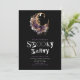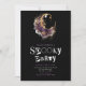 Esta invitación a la fiesta de Halloween prepara el terreno para un acontecimiento de estilo desconcertante, con su fondo negro y su sobria letra que deletrea "Fiesta espeluznante" en blanco y violeta. El tipo de letra se asemeja a las letras cortadas de una revista de terror, lo que aumenta la sensación de alarma. En el centro de la invitación se encuentra un cráneo súper adornado, adornado con flores verdes y onduladas, que crea un punto focal macabro y elegante. La combinación de colores negro, blanco, violeta, verde y rubor crea un aspecto llamativo y evocador, perfecto para una celebración de Halloween. La calavera decorada aporta un toque de fantasía, mientras que las flores verdes y onduladas le dan un toque de elegancia y belleza. Juntos, estos elementos crean un diseño que es a la vez espeluznante y sofisticado, sentando las bases para una memorable fiesta de Halloween. El fondo de la invitación sigue la temática con su elegante fondo negro, asegurando un aspecto cohesivo y elegante. Ya sea que estés organizando una sofisticada pelota de máscaras o un misterioso fiesta de cena, esta invitación seguramente marcará el tono perfecto para tu celebración de Halloween. Invite a sus huéspedes a que se unan a usted para una noche de asombrosa diversión con esta impresionante invitación a la fiesta de Halloween.