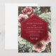 A dramatic floral design bursts with deep crimson and soft blush blooms, accented by hints of sage greenery and dark, moody foliage. This opulent arrangement evokes a sense of vintage romance and sophisticated charm. The rich color palette creates an atmosphere of passionate celebration.